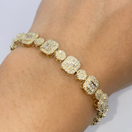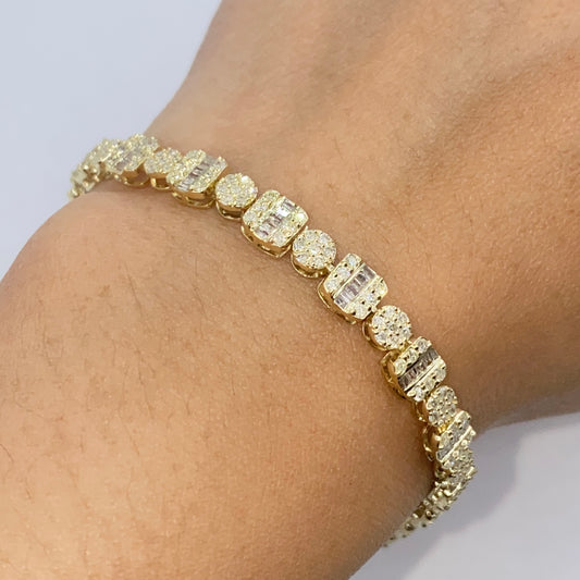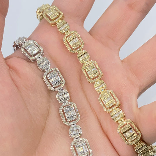 10K 7.5MM Square Circle Diamond Baguette Bracelet 8"