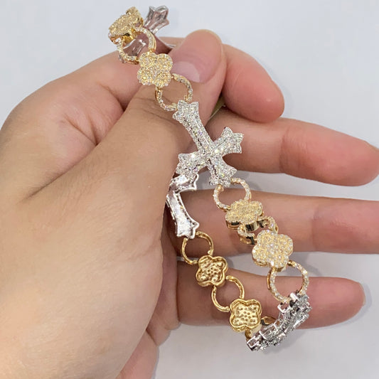 10k Cuban Trefoil Cross Diamond Bracelet