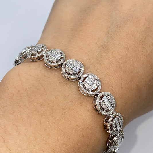 10K Halo Diamond Baguette Tennis Bracelet 8"