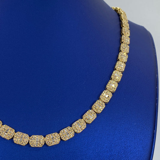 10K 6MM Diamond Baguette Geometric Link Chain 22"