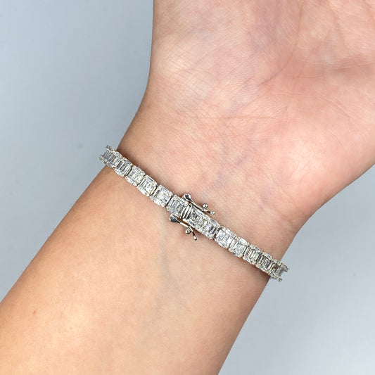 14K 4.5MM Tennis Diamond Baguette Bracelet 8"