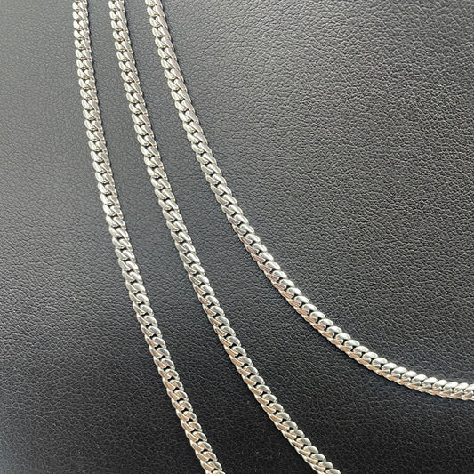 14K Solid White Gold 2.9MM Cuban Link Chain 16-20"