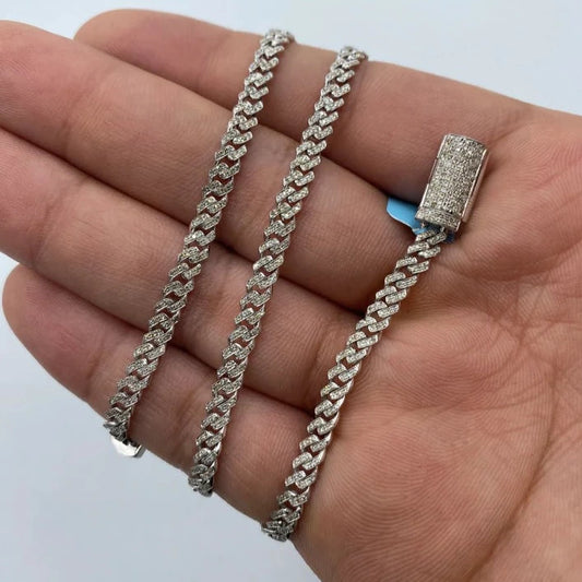14K 4MM Cuban Link Diamond Chain 16-22"