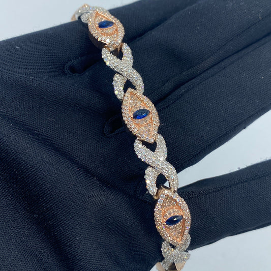 14K Diamond Evil Eye Bracelet 8"
