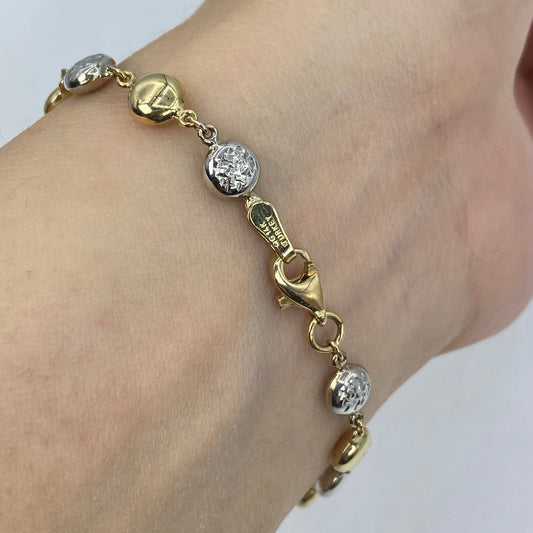 14K 5.5MM Two-Tone Flat Ball Link Bracelet 7"