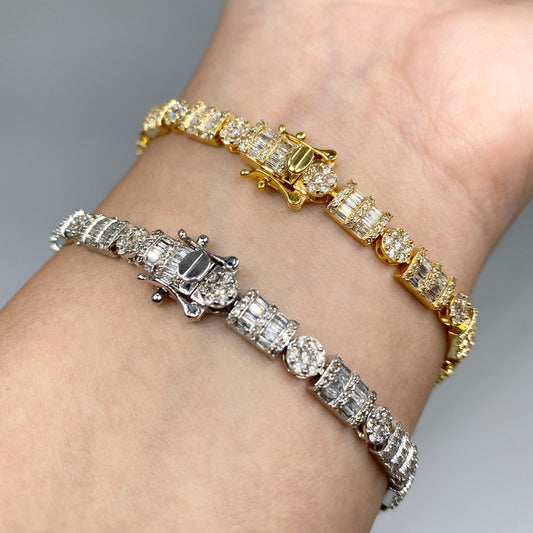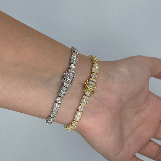 10K 5.5MM Circle and Rectangle Diamond Baguette Link Bracelet 8-7.5"