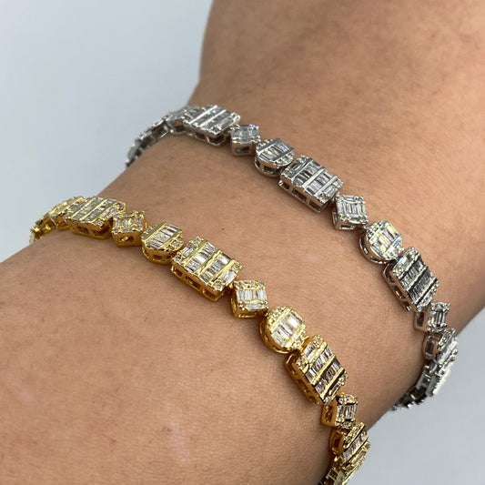 10K 6MM Diamond Baguette Geometric Link Bracelet 8"