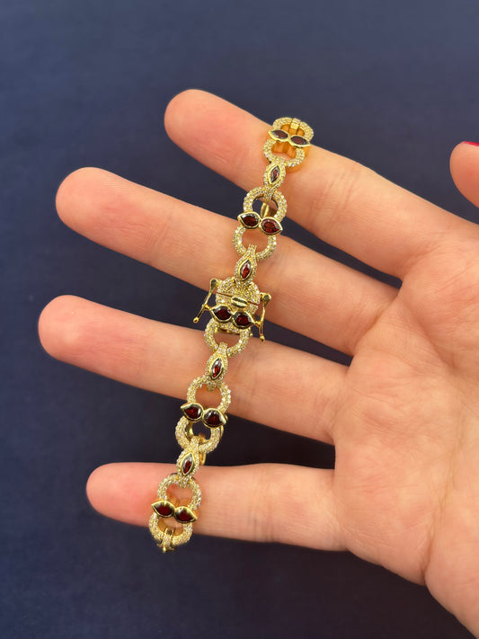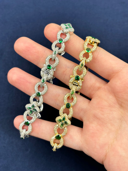 10k Gold Infinity Flower Diamond & Green Gemstone Bracelet
