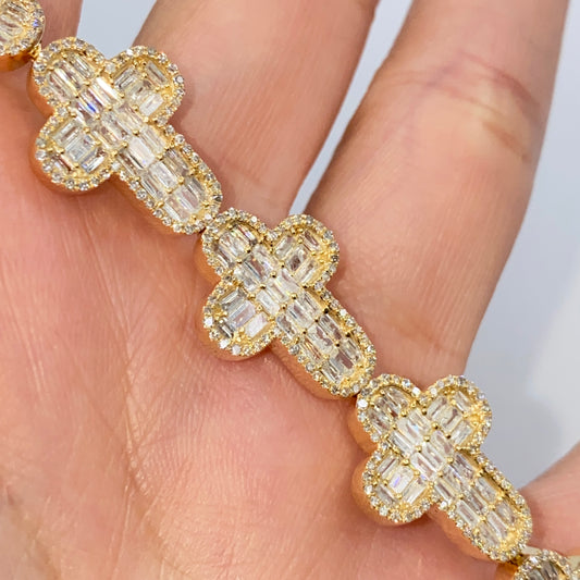 14K 12.5MM Chubby Cross Diamond Baguette Bracelet