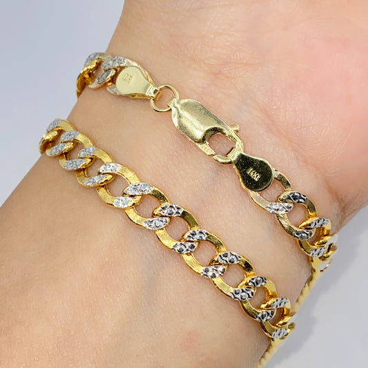 10K 7.8MM Rectangle Circle Link Tennis Bracelet 8"
