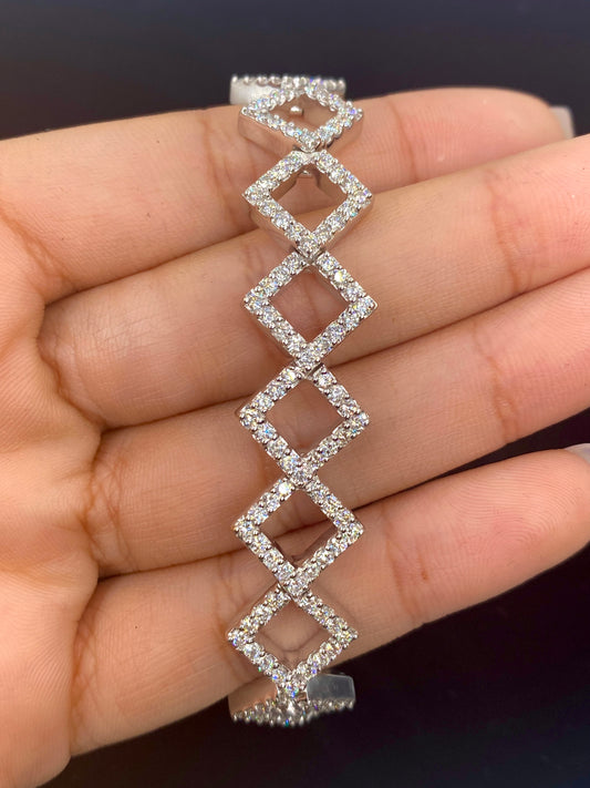 10K 7.5MM Square Circle Diamond Baguette Bracelet 8"