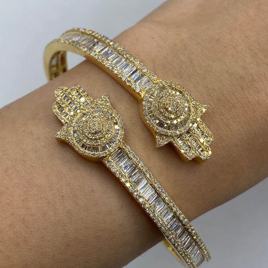 10K Hamsa Diamond Bangle Bracelet 6.5"