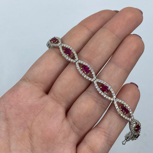 18K Ruby Evil Eye Diamond Bracelet 7"