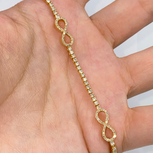 14K Watch Strap Square Cut Diamond Bracelet 8"