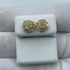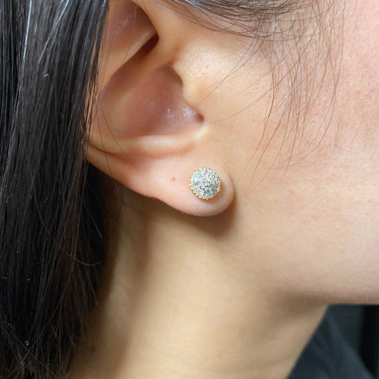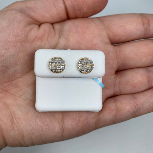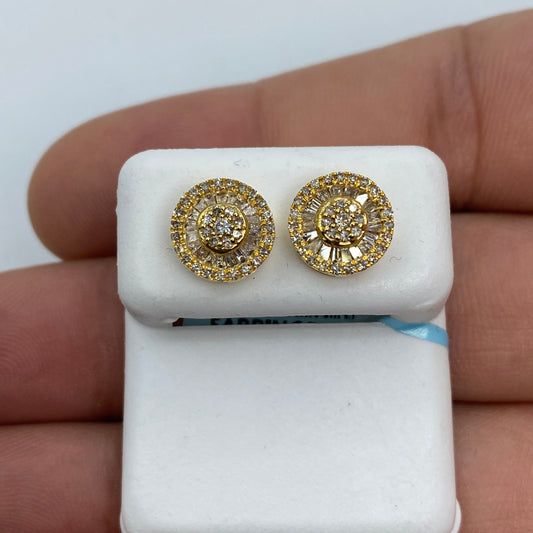 14K Gold 3D Circle Halo Diamond Baguette Earrings