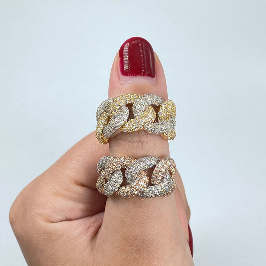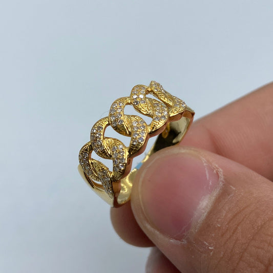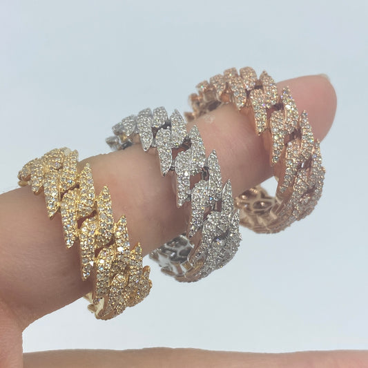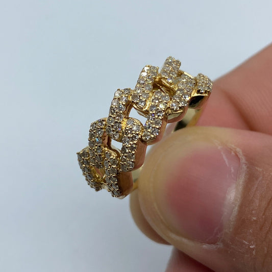 14K Gold 8MM Iced Cuban Core Link Diamond Ring