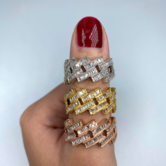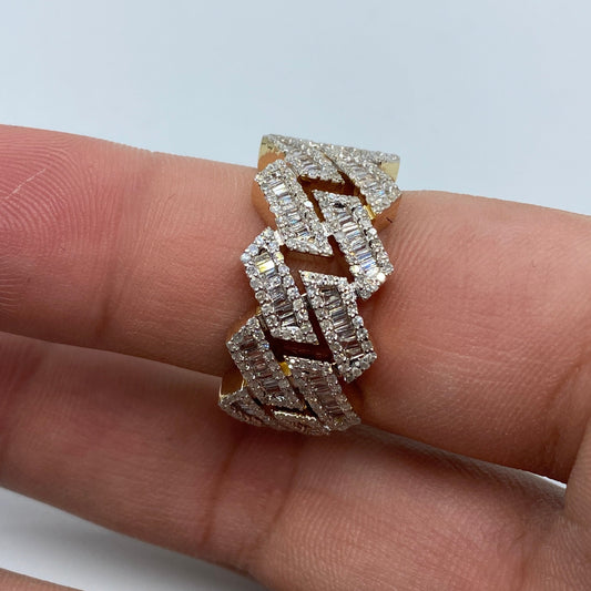 14K Gold 13MM Cuban Link Diamond Baguette Ring