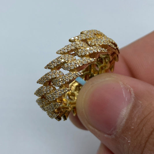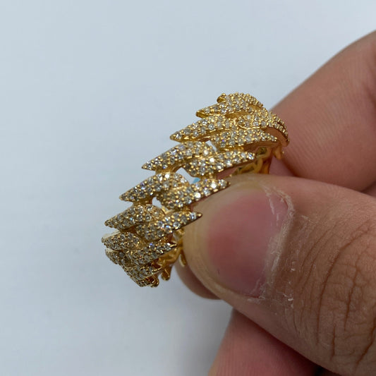 14K Gold 9MM Cuban Thorn Link Diamond Ring