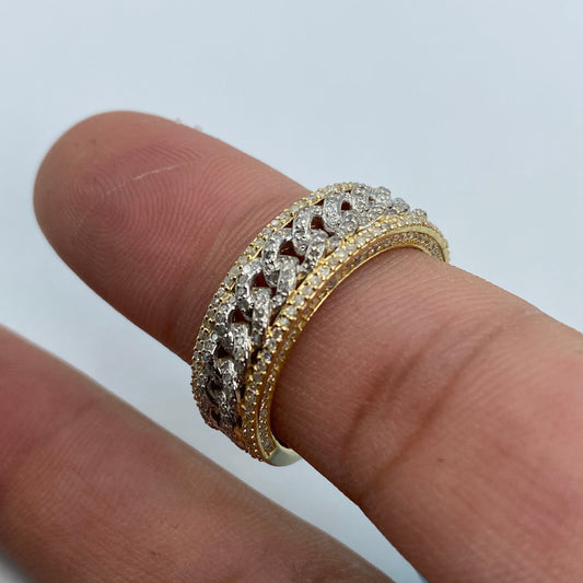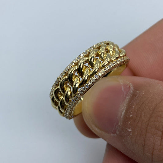 14K Gold 8MM Cuban Link Banded Diamond Ring