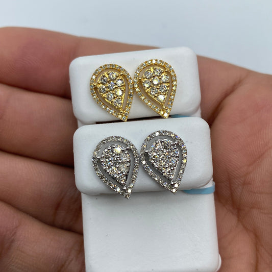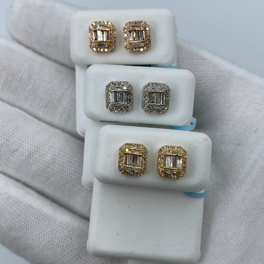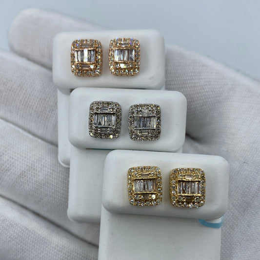 14K Large Rectangle Halo Diamond Baguette Earrings