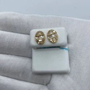 14K Oval Diamond Baguette Earrings