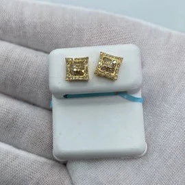 14K Square Gutter Diamond Baguette Earrings
