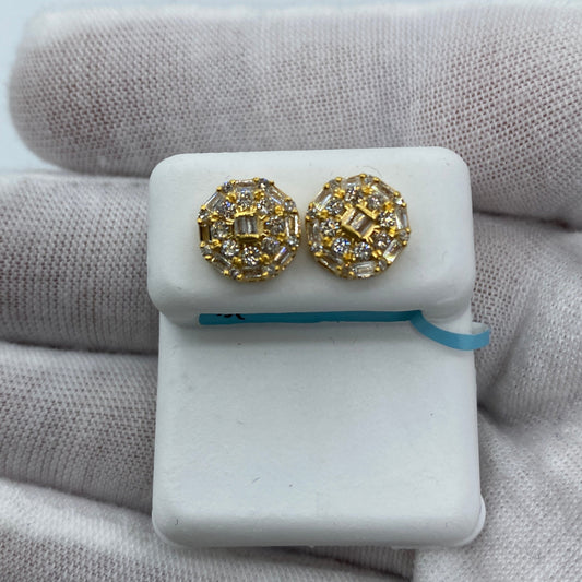 14K Circle Gutter Diamond Baguette Earrings