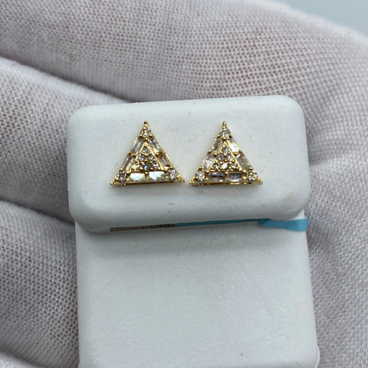 14K Equilateral Triangle Diamond Baguette Earrings