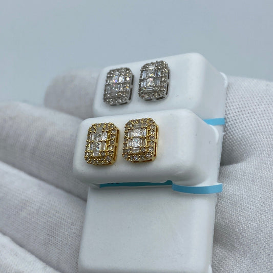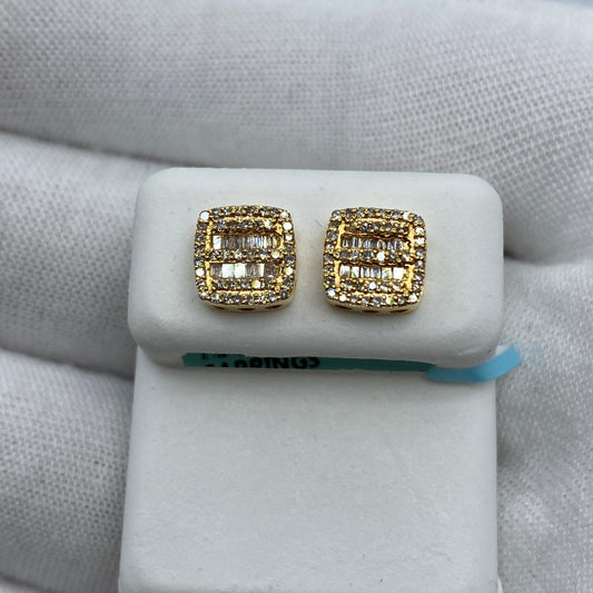 14K Square Double-Row Diamond Baguette Earrings