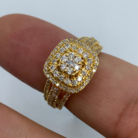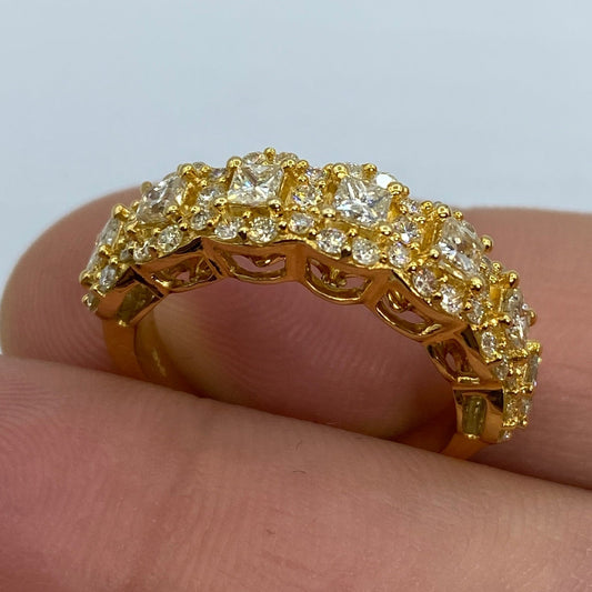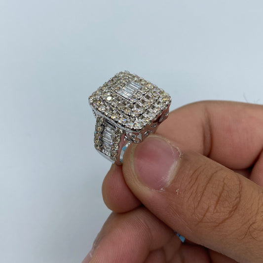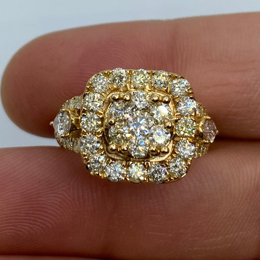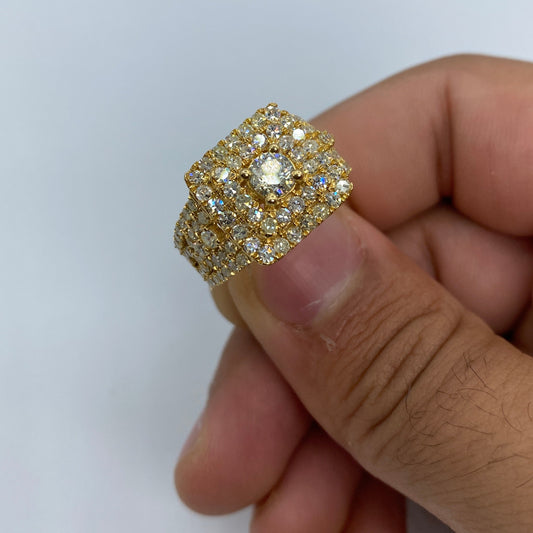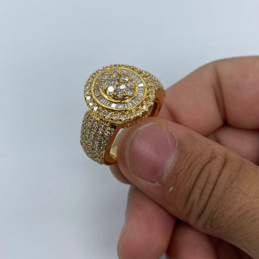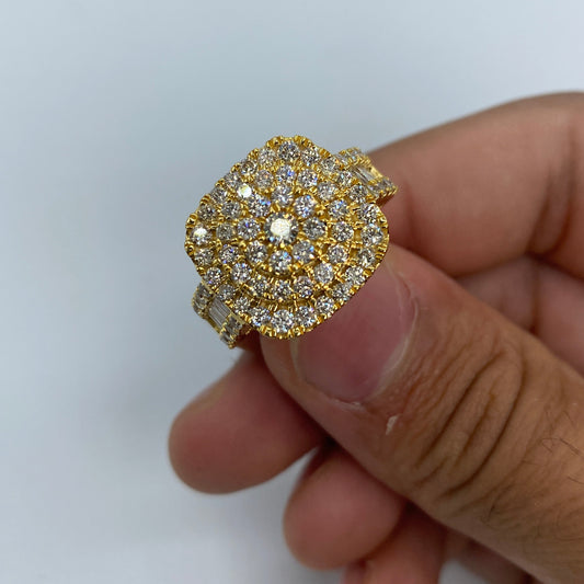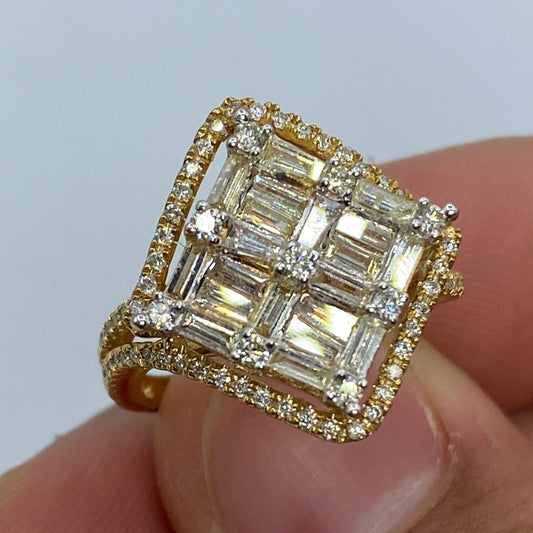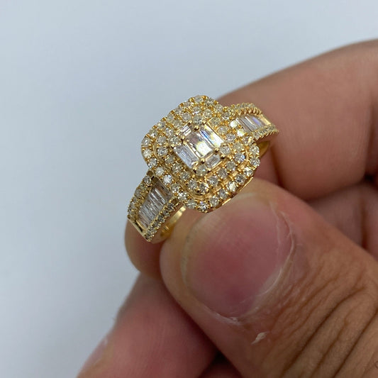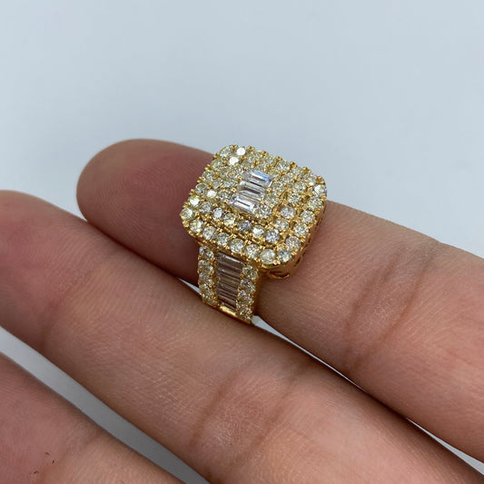 14K Rectangle Center Diamond Baguette Ring in Yellow
