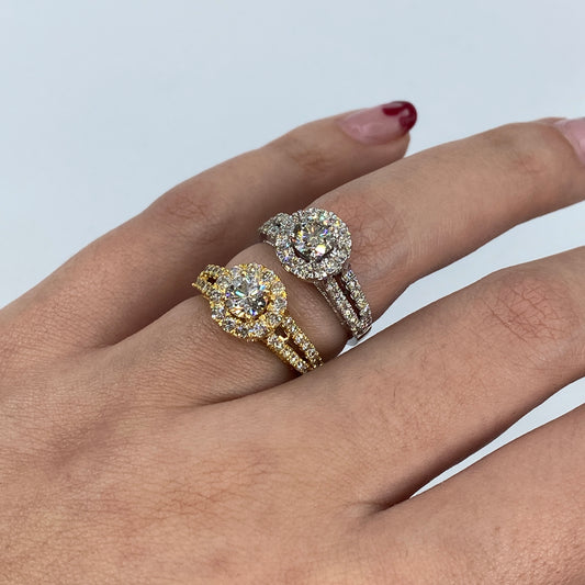14K Square Halo Diamond Engagement Ring with Stack Band
