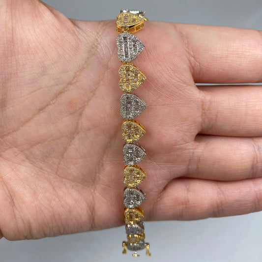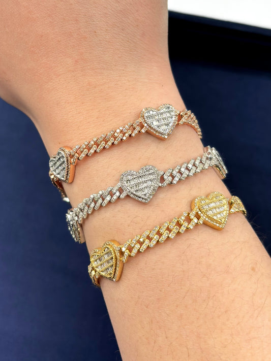 10K 7 Inches Baguette Heart Cuban Bracelet