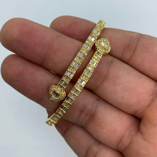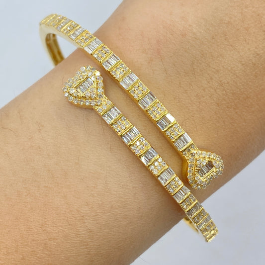 10K/14K Heart Diamond Baguette Bangle Bracelet