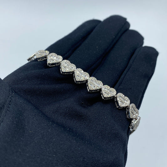 14K 9MM Hearts Link Diamond Baguette Bracelet 6.5-7.5"