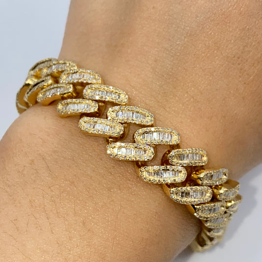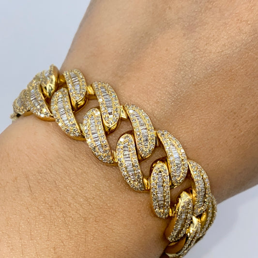 14K 12MM Chubby Cuban Link Diamond Baguette Bracelet