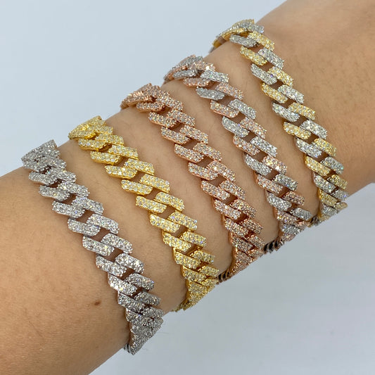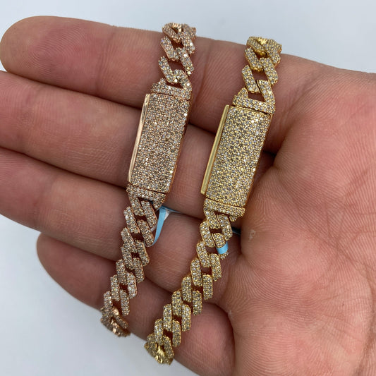 10K 9MM Cuban Link Diamond Bracelet 7.5-8.5"