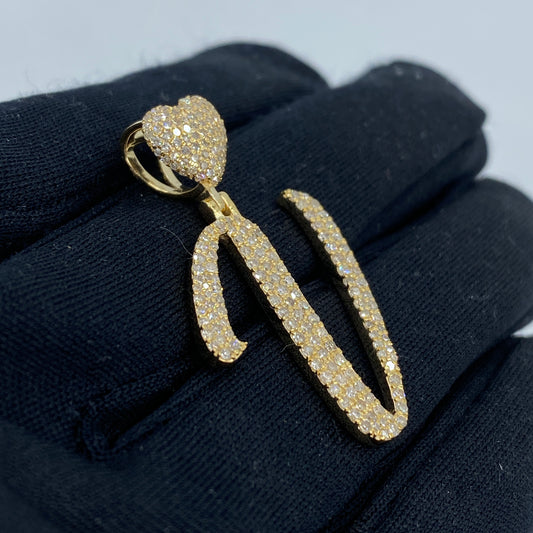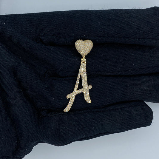 14K Script Initial Letter Heart Diamond Pendants Full Collection