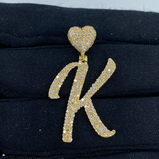 14K Initial K Script Heart Diamond Pendant
