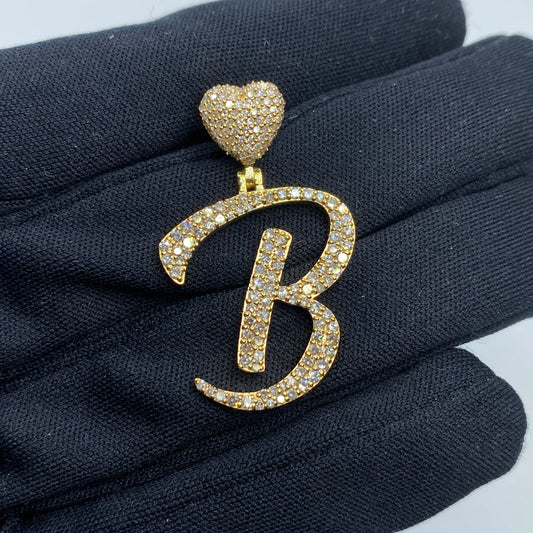 14k Initial B Script Heart Diamond Pendant