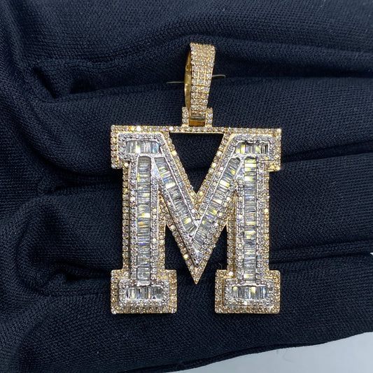 10K Varsity Initial Letter Diamond Baguette Pendants Full Collection