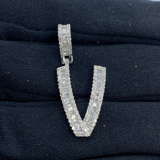 14K Initial V Diamond Baguette Pendant