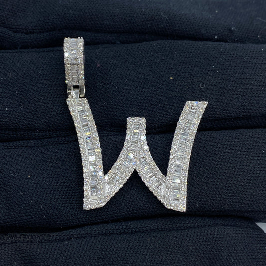 14K Initial W Diamond Baguette Pendant