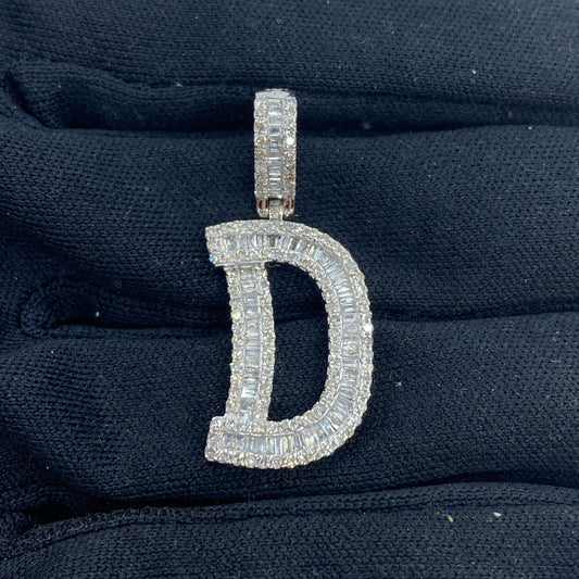 14K Initial D Diamond Baguette Pendant