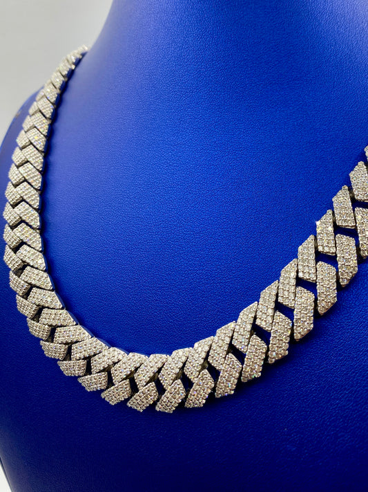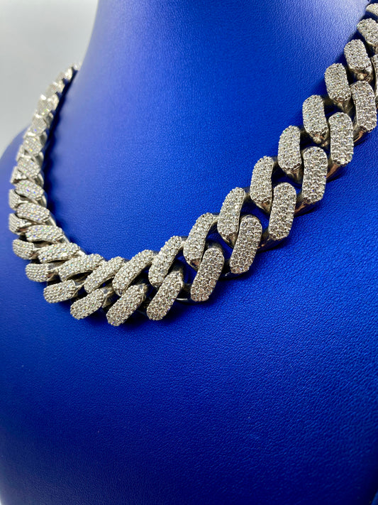 14k White Gold Jumbo Diamond Cuban Chain 20mm