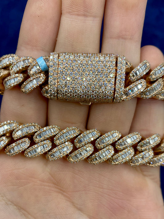 14k Rose Gold Jumbo Baguette Diamond Cuban Chain 14.2mm