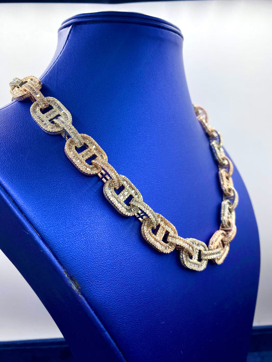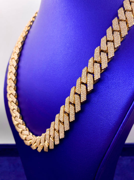 14k 12.4mm Two Tone Baguette Diamond Cuban Chain 20”