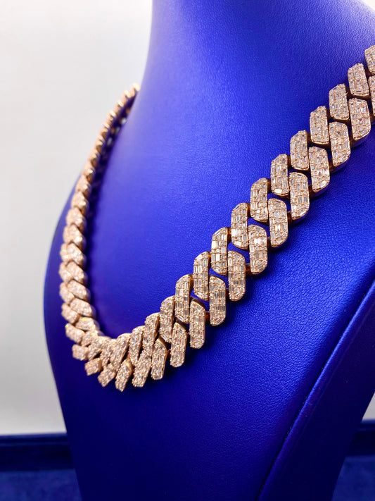 14K 18.5mm Rose Gold Baguette Cuban Chain 22"