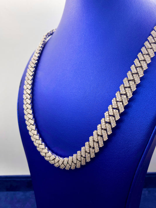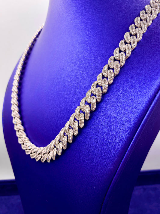 14k 12.5mm White Gold Diamond Cuban Chain 24”