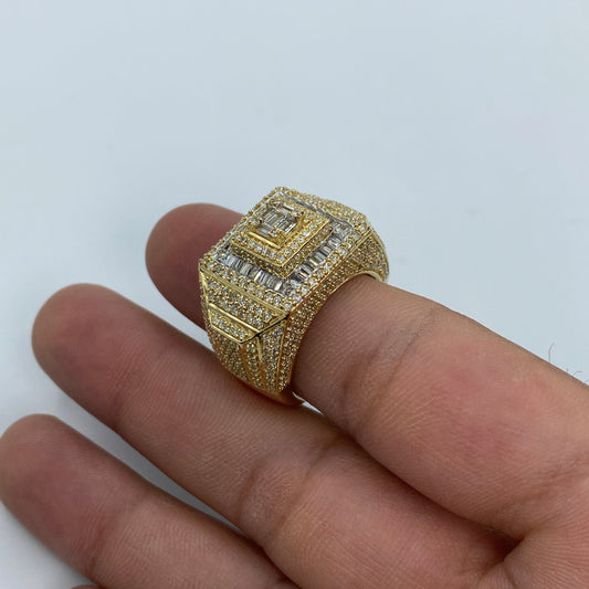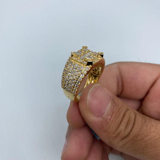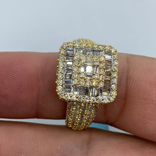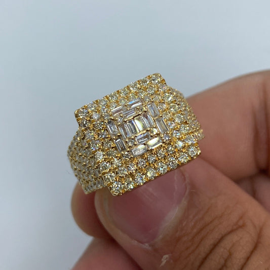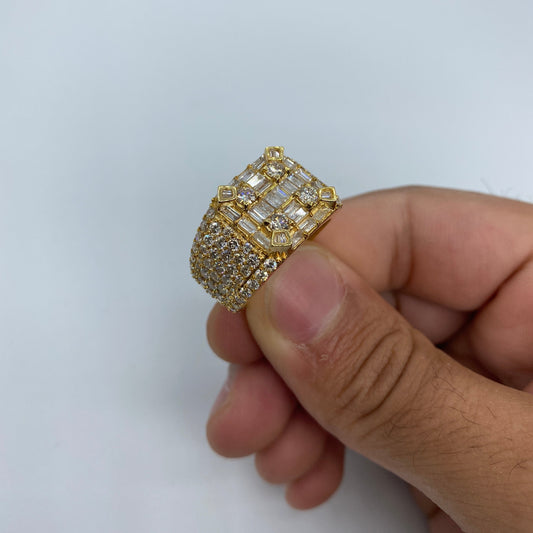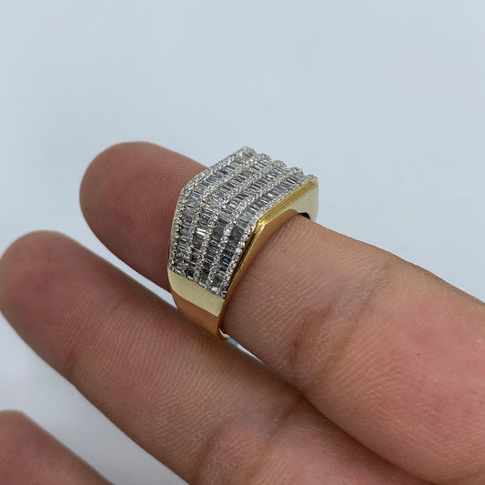 14K Rectangle Quad-Row Diamond Baguette Ring