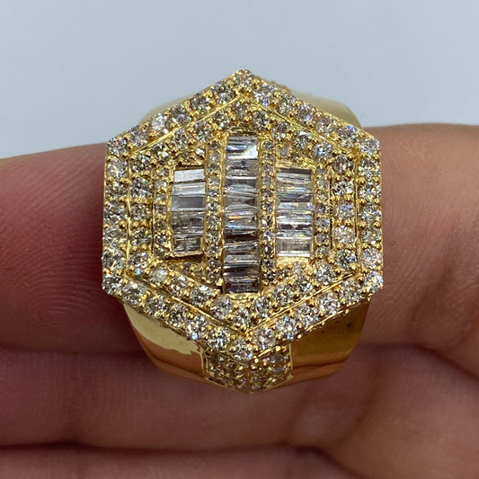 14K Hexagon Diamond Baguette Ring